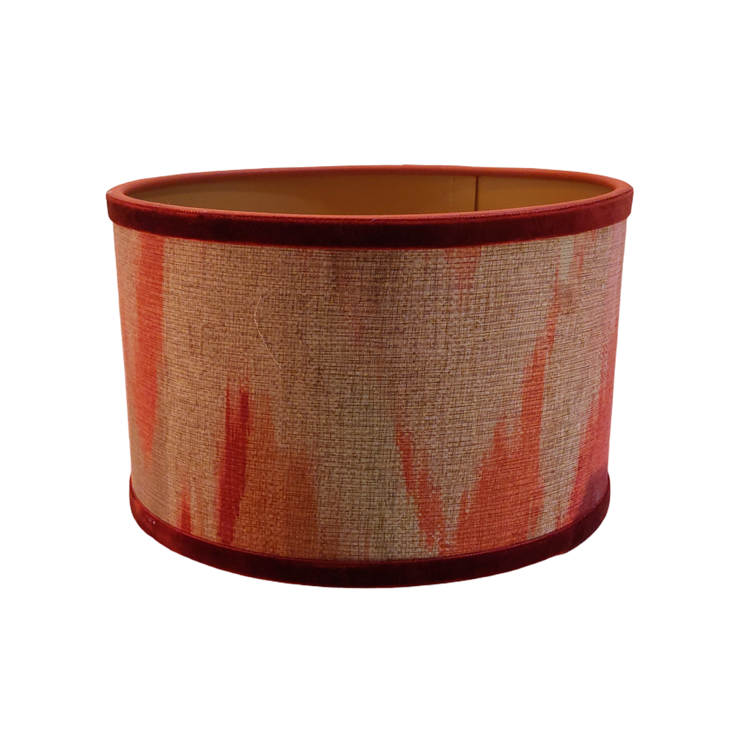 De Positano lampenkap creëert een unieke, maar toch rustige sfeer door de velours stof in rood oranje tinten. Dit zigzagdesign is uniek en zorgt voor een zachte, vloeiende beweging op de kap. De subtiele, warme kleuren roepen een kalme sfeer op. De lampenkap is afgewerkt met een contrasterend roest fluwelen bandje dat het warme kleurenpalet compleet maakt.