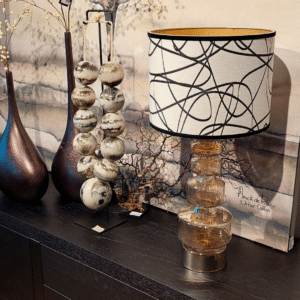De Samussi is een simpele lampenkap die door zijn zachte kleurenpalet en afwerking perfect past bij elke kamer die een ingetogen, rustgevend accent nodig heeft.